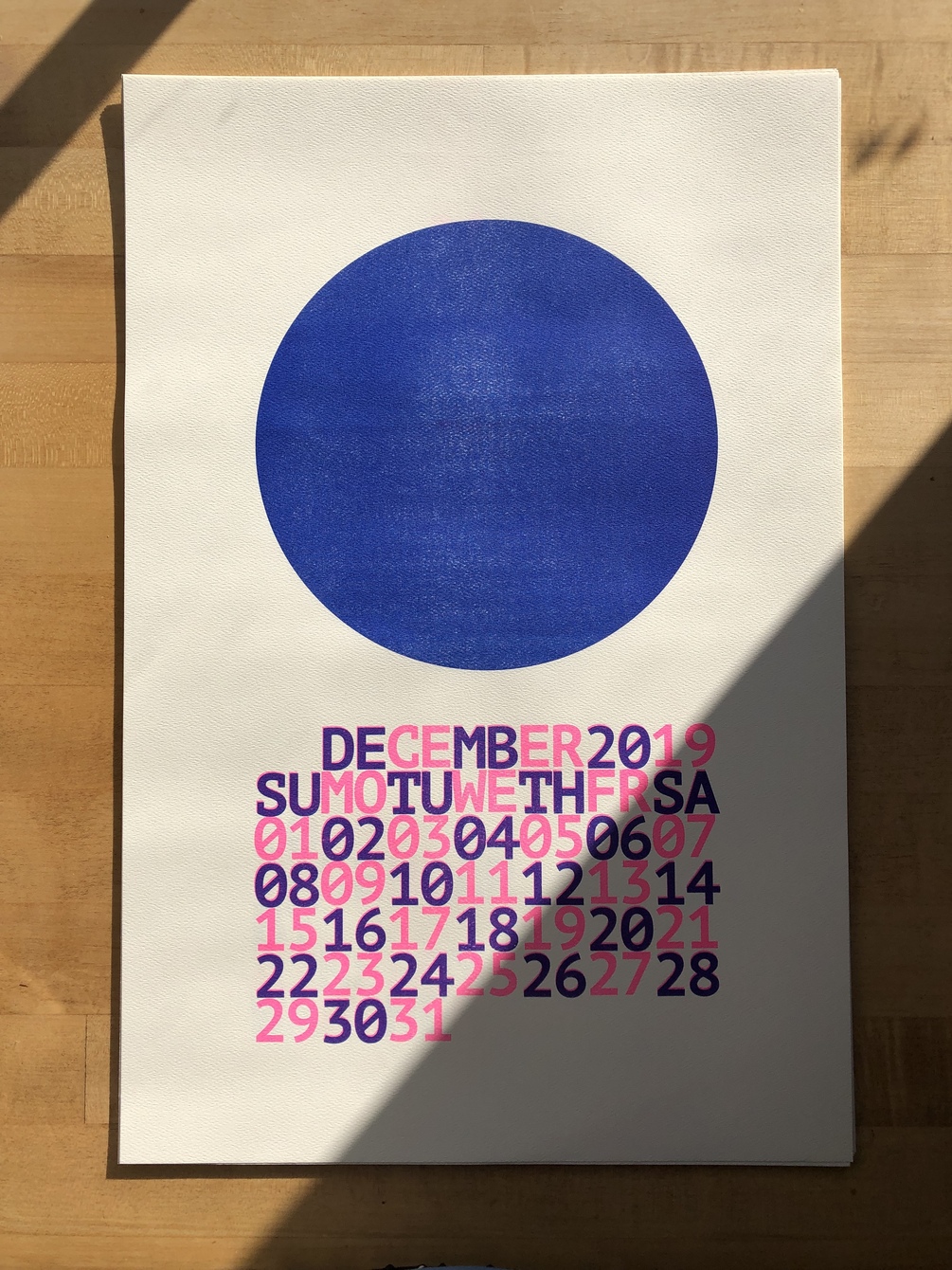 Thanks for your interest in the 2019 Risograph Calendar! I'm accepting pre-orders for these big babies, and will ship by December 17th (or sooner.)